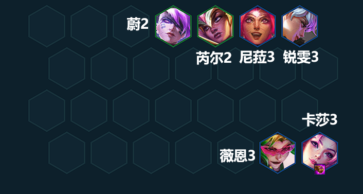 阵容组成:补出卡莎、薇恩、芮尔,EZ和凯尔卖掉(记得要吃了魔盗团的奖励再卖)