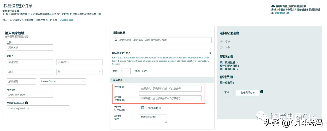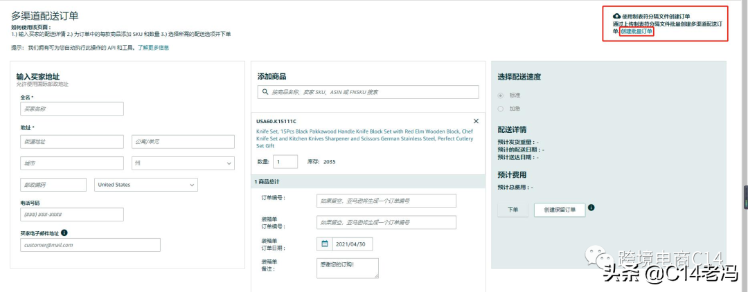 进入多渠道配送订单窗口后,用美国地址生成器随机生成一个地址,美国地址生成器网址: