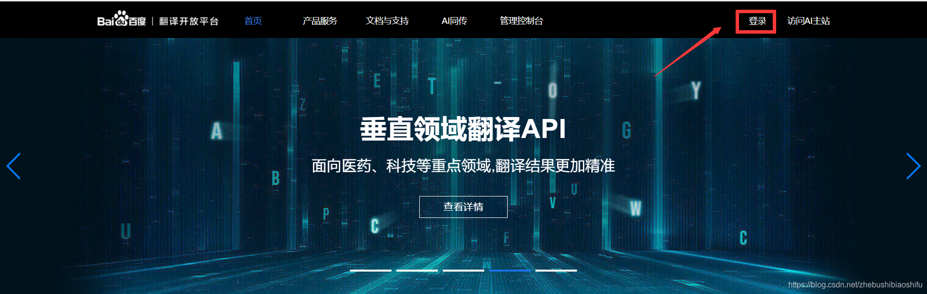 https://fanyi-api.baidu.com/),首先点击右上角进行登录。