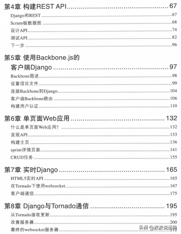 第4 章--构建REST API 。REST API 是创建丰富的、具有内容相关性的网络应用的重要部分,利用Django 静态框架开始构建一个大比例的Scrum 板应用。