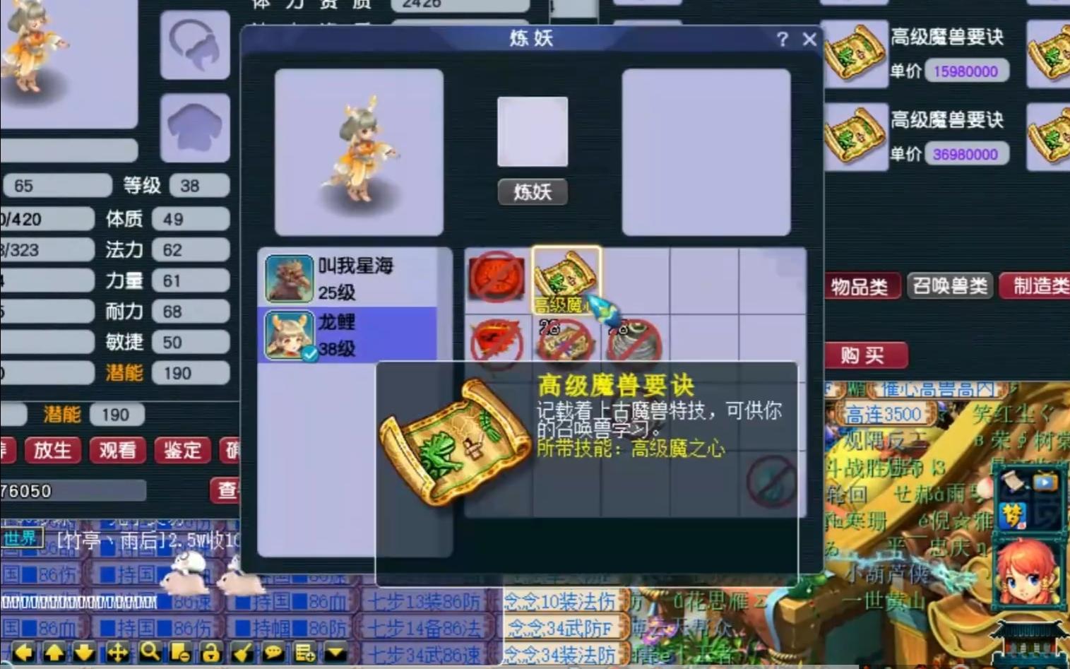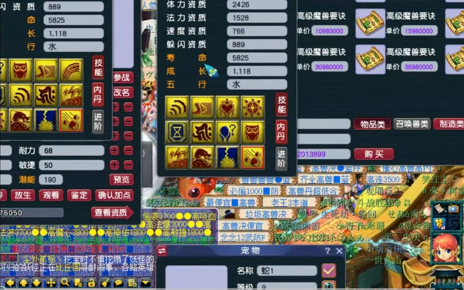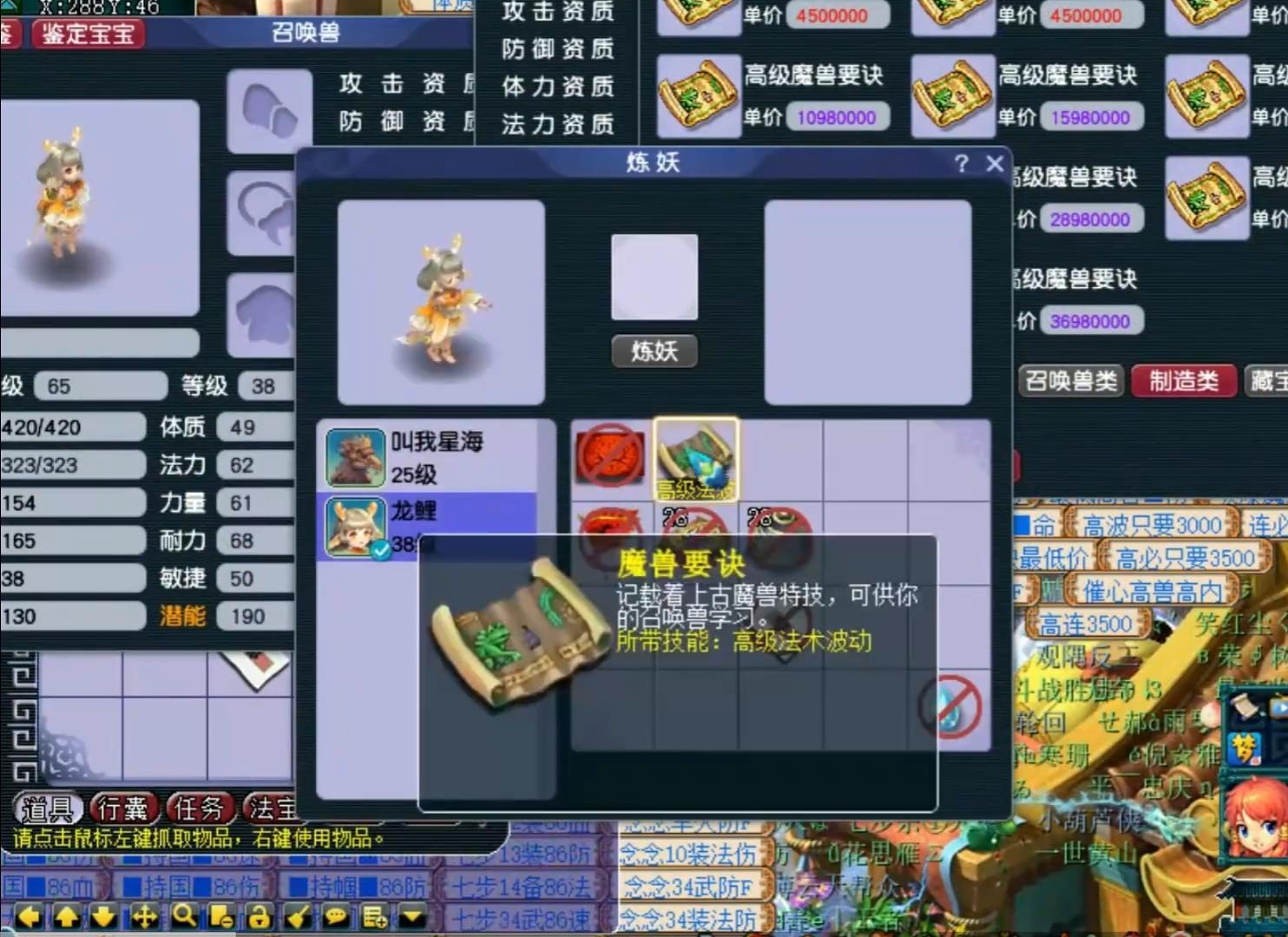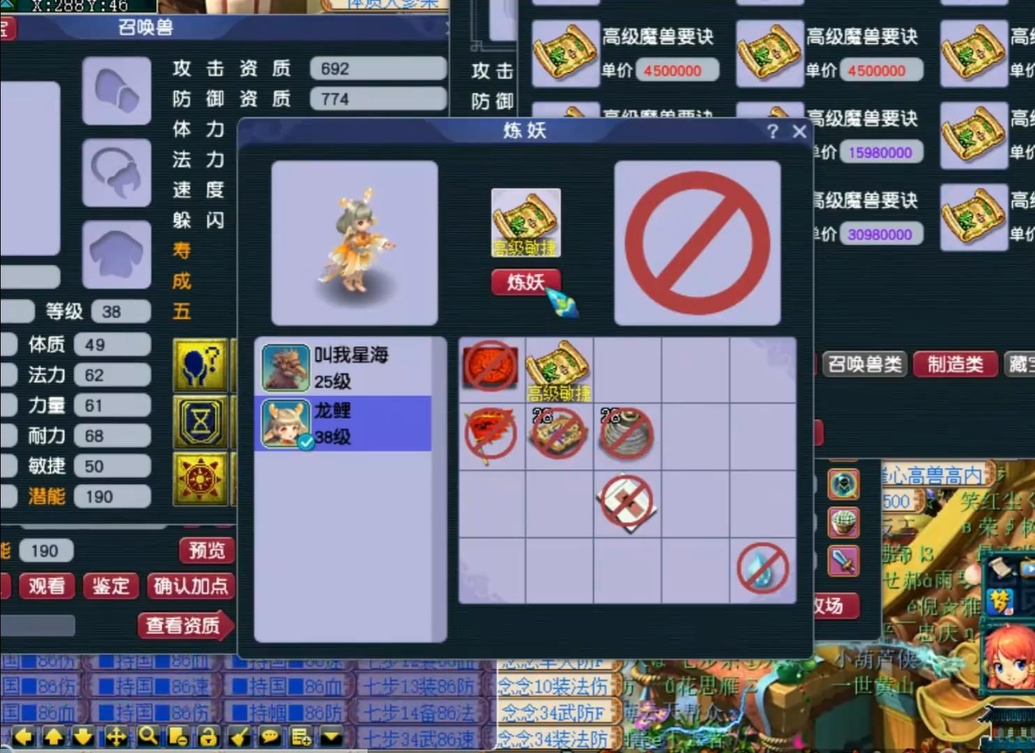作为梦幻西游最高端玩法之一的炼妖合宠,几乎每天都不计其数的召唤兽胚子被拿来炼妖合宠。炼妖合宠虽然很难一下子合出一只价值几十万乃至百万的胚子,但可以让你合出来的极品胚子瞬间升值。目前合出来的胚子有两种选择,一是直接卖给土豪,二是自己打书,然后再出售。对于平民玩家来说,肯定是选择直接卖胚子,但有时候没遇到大老板,很难快速卖掉,最后只能忍痛打书。比如下面所展示的一只个性龙鲤胚子,标价5万无人问津,经过一番打书操作之后,价值翻了几番!