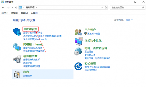 3.在控制面板主页点击系统与安全选项,如下图所示