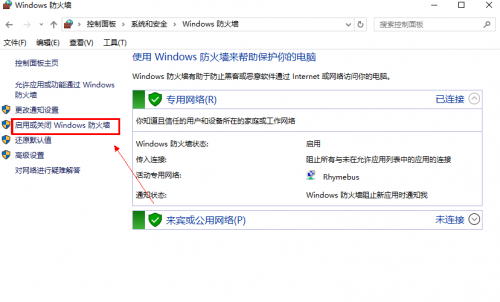 5.进入防火墙设置界面后点击启动或关闭防火墙选项