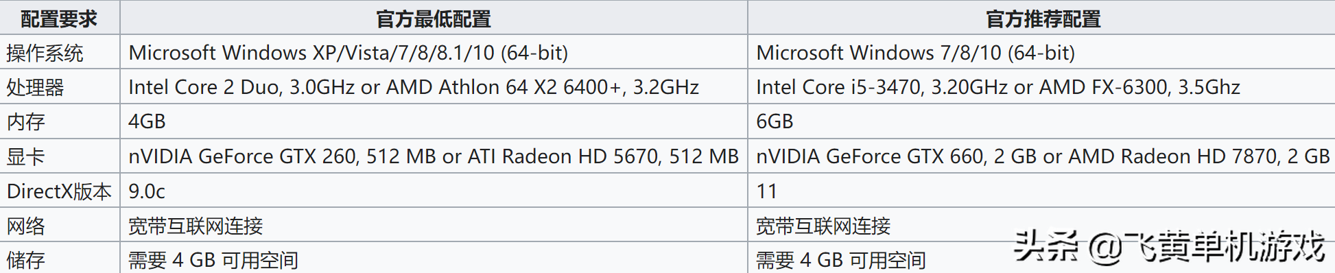 GPU:GTX 1060或RX 480及同等水平,显存≥6GB