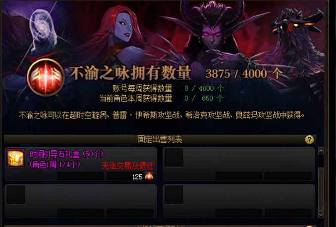 每周每个角色可以使用1600个公会硬币兑换100个时间引导石,打开后获得的引导石在为永久的。