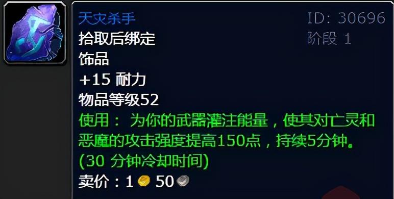 魔兽世界TBC怀旧服P3阶段前瞻,新增的两个25人团本分别是黑暗神庙(BT)和海山(HS),这两个团本里面的怪不是恶魔就是亡灵,因此有一些比较特殊的装备或者道具会成为众多职业的中的VIP级别选择。比如说,斯塔索姆圣水,屠魔药剂等。而其中有一个小装备,非常容易被玩家忽略,那就是血精灵圣骑士的职业任务奖励,天灾杀手!