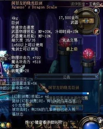 不过阿甘左的隐龙巨剑确实有一把粉色品质的武器,在抉择之沼活动中可以获得,但属性并没有多么逆天。