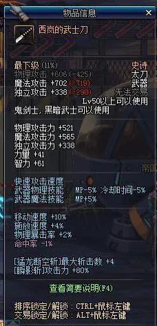 这把武器是50级史诗太刀,外观与白装新手太刀别无二致。但在它低调的外表下却隐藏着高调的属性:猛龙断空斩最大斩击次数+4,瞬影斩技能伤害提高80%。其实这把武器跟上面说的G.S.D的究极波动刃一样,都是只存在于数据库中,勇士们并不能通过正常手段获取。现在游戏中能看到的,应该都只是开盒子出的武器外观。