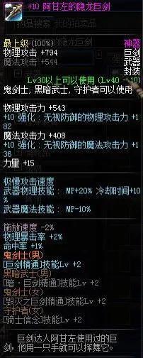 相信见识过阿甘左的勇士们,都知道他的幻影剑舞有多厉害。很长一段时间,在网上都流传着一张史诗版“阿甘左的隐龙巨剑”的图片,据证实,这张图片为PS。解析DNF数据库中并没有这把史诗巨剑的代码。
