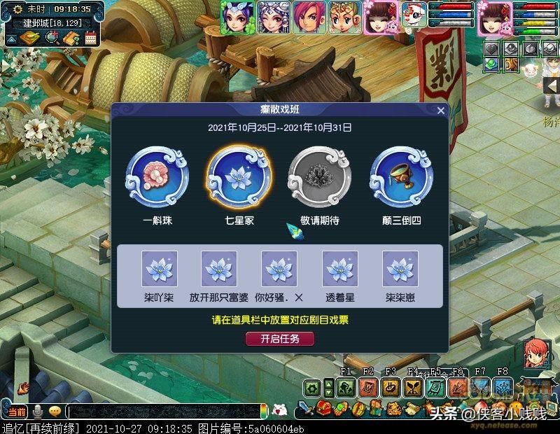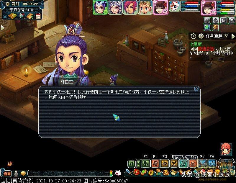 1.梨园小贩处购买“七星冢”戏票后找戏班老板开启任务,看完开场动画后,与香铺老板对话被告知林白芷要出趟远门,护送他一程便可获赠白木沉香。此程目的地为七星镇。