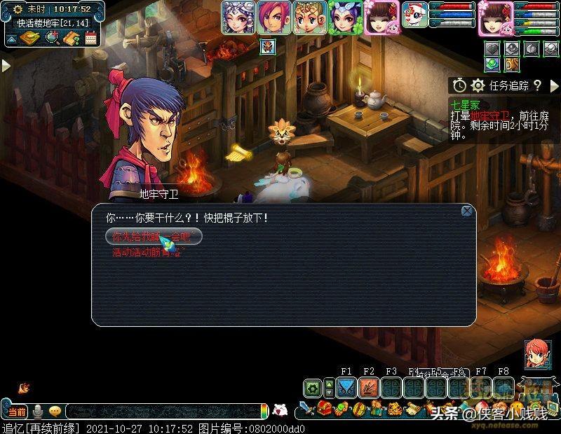 8.传送到快活楼地牢,点击面前林白芷进入动画,结束后继续点击林白芷,打晕地牢守卫,进入庭院毁坏香炉(过程中切记躲开守卫,否则会被传送回地牢)。