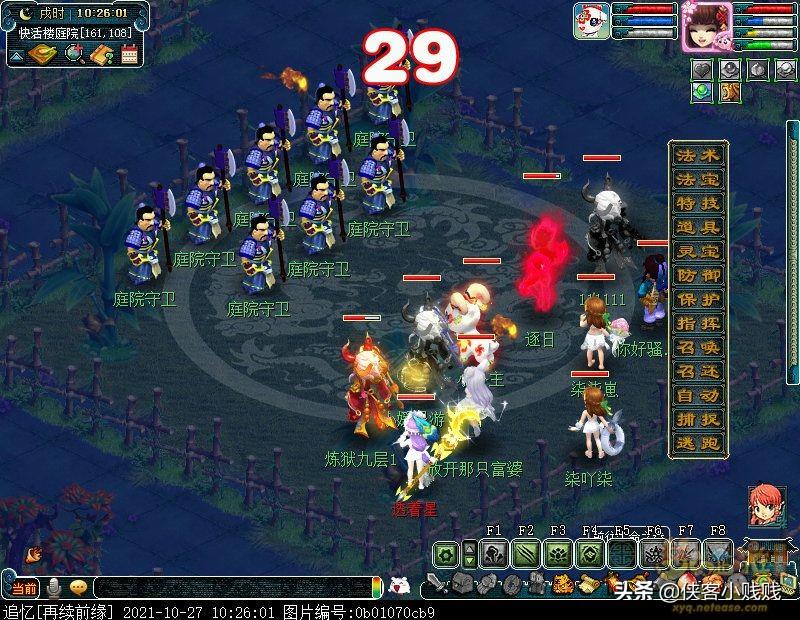 11.点林白术决战,夜罗刹物理系会破血,炎魔神法系,幽灵地府,主怪方寸并且会召唤前排傀儡卫卒(门派随机),故优先集火点杀主怪,封印小夜,辅助系可携带罗汉金钟减轻队伍压力。