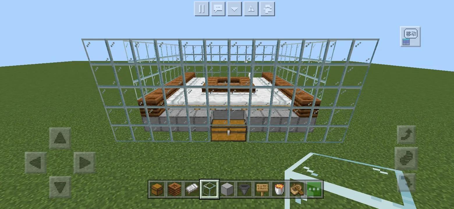 第十步,在玻璃上做一个二乘二的小平台,用船把小白拉到这个平台上(注意上面也要搭一个平台,小白会被阳光点燃)