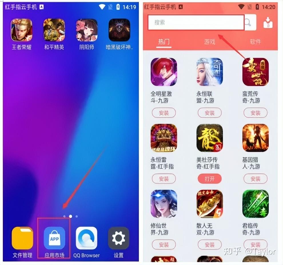 第二步:进入主界面后,打开应用市场,搜索自己想要玩的游戏,点击安装。