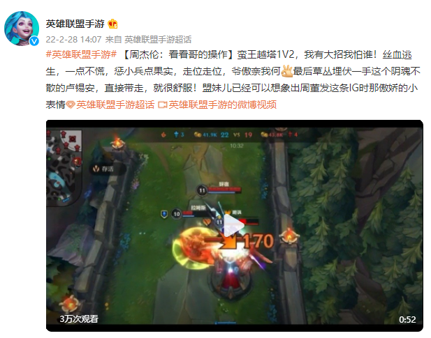 前段时间,周董也曾以一套蛮王1V2的天秀操作秀翻全场,靠着一套大招丝血反杀,精彩的走位引发歌迷以及玩家们的热烈讨论。