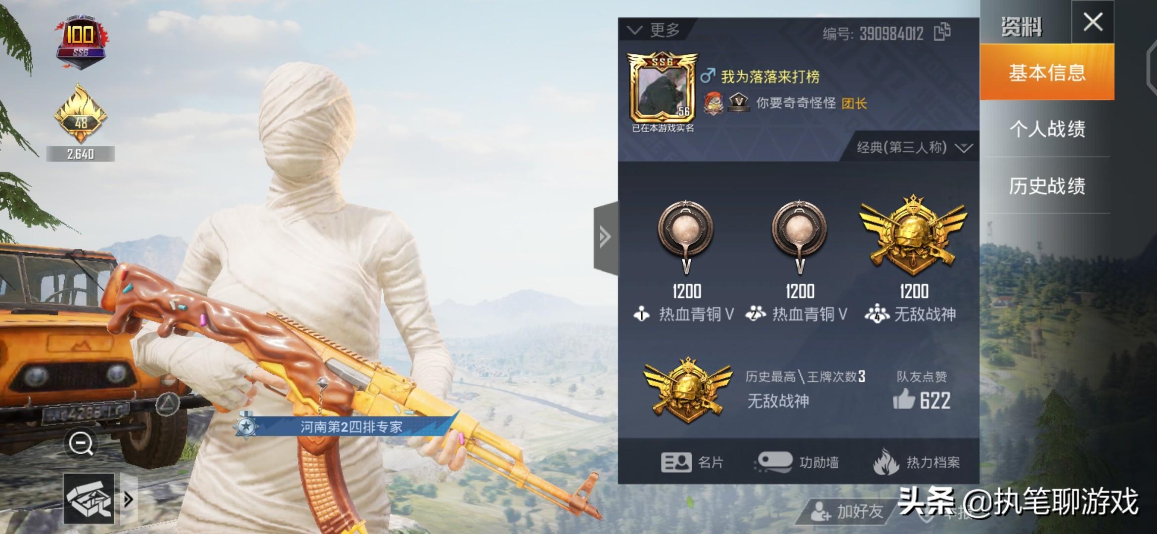 接下来我们来看一位《和平精英》玩家的游戏名片,你会发现许多的亮点哦~如上图所示,此时这位玩家左上角的SS6赛季达到了100级,左后方停放着公测至今为止,最昂贵的载具皮肤:南瓜吉普车!与此同时呢,玩家还手持AKM特效枪,身穿有着雪地小吉利服绰号的法老套装。是不是觉得这位玩家相当的“豪气”呢?单这些皮肤的价值就已经超过5位数了~不过当看到对方的段位时,你可能会觉得是P图,哪里有1200分的无敌战神?嘿,别着急下定结论,我们来看看光子给玩家发来的邮件吧!