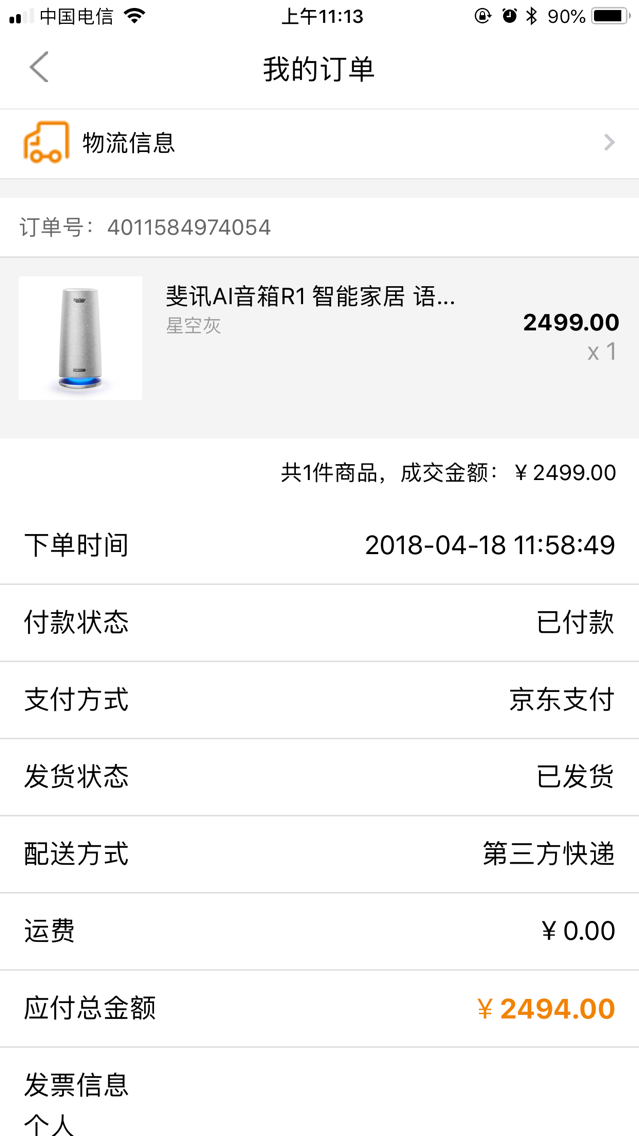 智能音箱,最近都很火爆啊,小米,苹果,还有好多其他公司,都出了自家的智能音箱,通过语音来控制一些简单的操作,摆脱了手动操作,可以空出双手,做一些其他事情,看网上好多小米小爱同学的体验视频,感觉挺好玩的,就像当年苹果的siri出现的时候,也是大量同学各种调戏,挺逗的,苹果的homepod因为还没在天朝上市,只能英文控制,也看了网上的好多视频,都说音质相当不错,所以自己很想体验一下只能音箱到底有啥好的,在没有看体验视频的时候在想为啥这么多科技大佬都在出这种产品,比较音箱的功能也就是播放音乐而已,顶多就是不用手动去选择歌曲和上下曲,音量大小,后面看了视频,才发觉,原来音箱也可以这么玩,真是666啊,这不,斐讯也出了自家的智能音箱R1之前一直没抢到,只能在斐讯商城里面才买到,所以到现在才能体验到这款产品!
