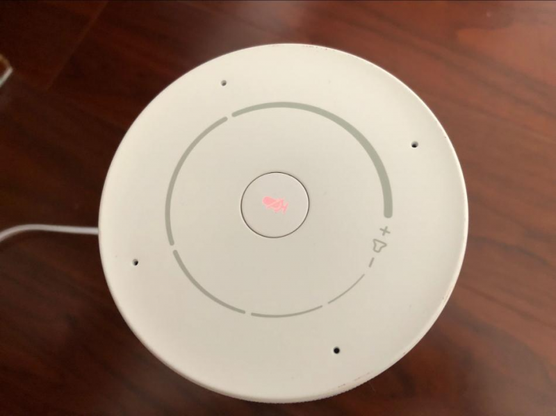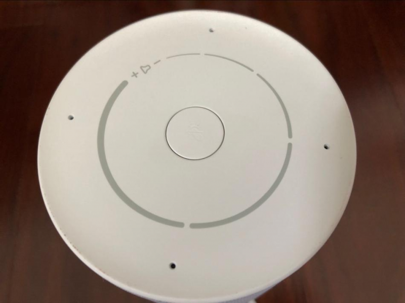 当你不想使用的时候,可以直接呼唤:小讯小讯,晚安,或者是休眠都可以!然后顶部的语音键会亮起红灯,如果想要重新唤醒音箱,按一下中间的语音键就可以了