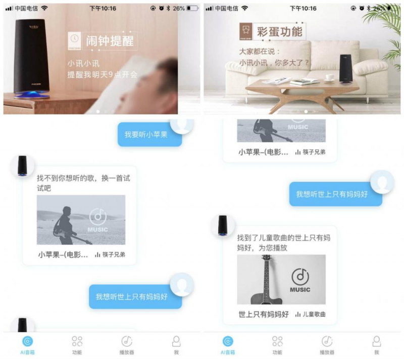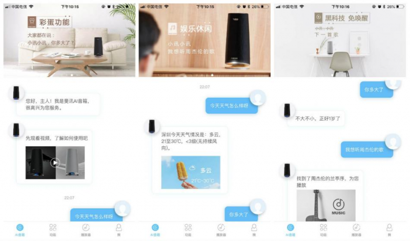 我们试一下音箱配套的APP吧,下载斐讯AI之后,我们来看看app界面