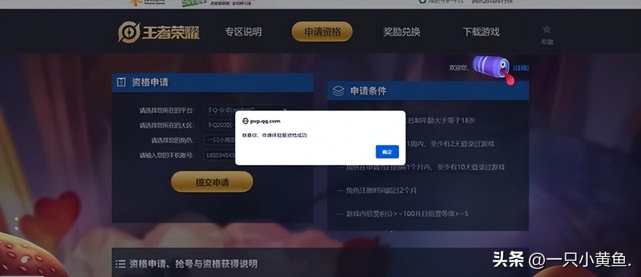 选择成功之后的界面左边是资格申请,右边是申请的条件。