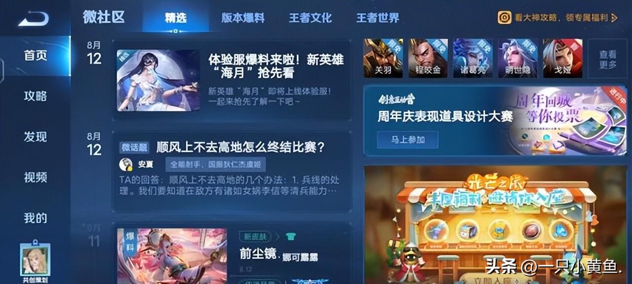 进入社区后点击精选中的体验服爆料新英雄,或者是英雄调整情报