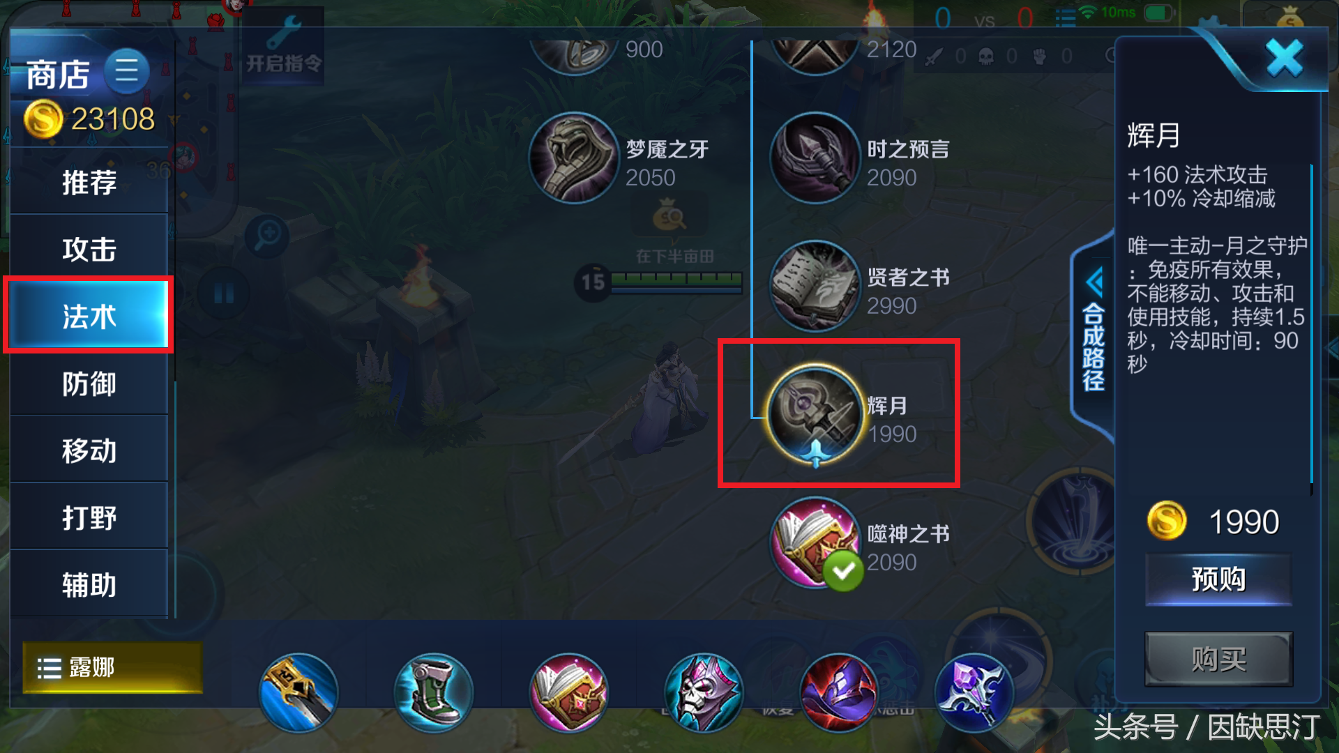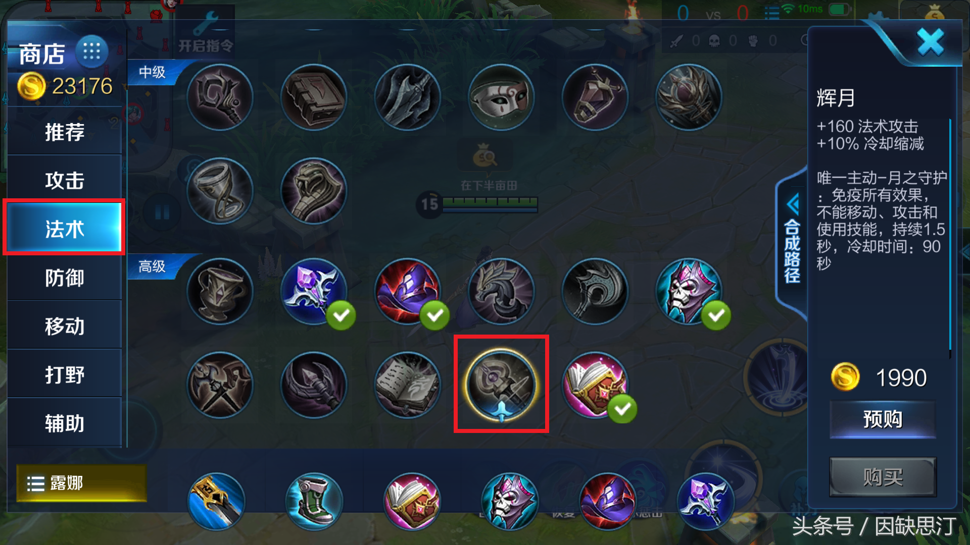 首先,我们都知道在保命装中,辉月是一件法师们最常用的保命装备,可以提供1.5秒的无敌效果,而且还是一件主动装备。但是由于商店中的排序,很多时候急用,但是却因为排序问题导致找不到而丢失了小命。
