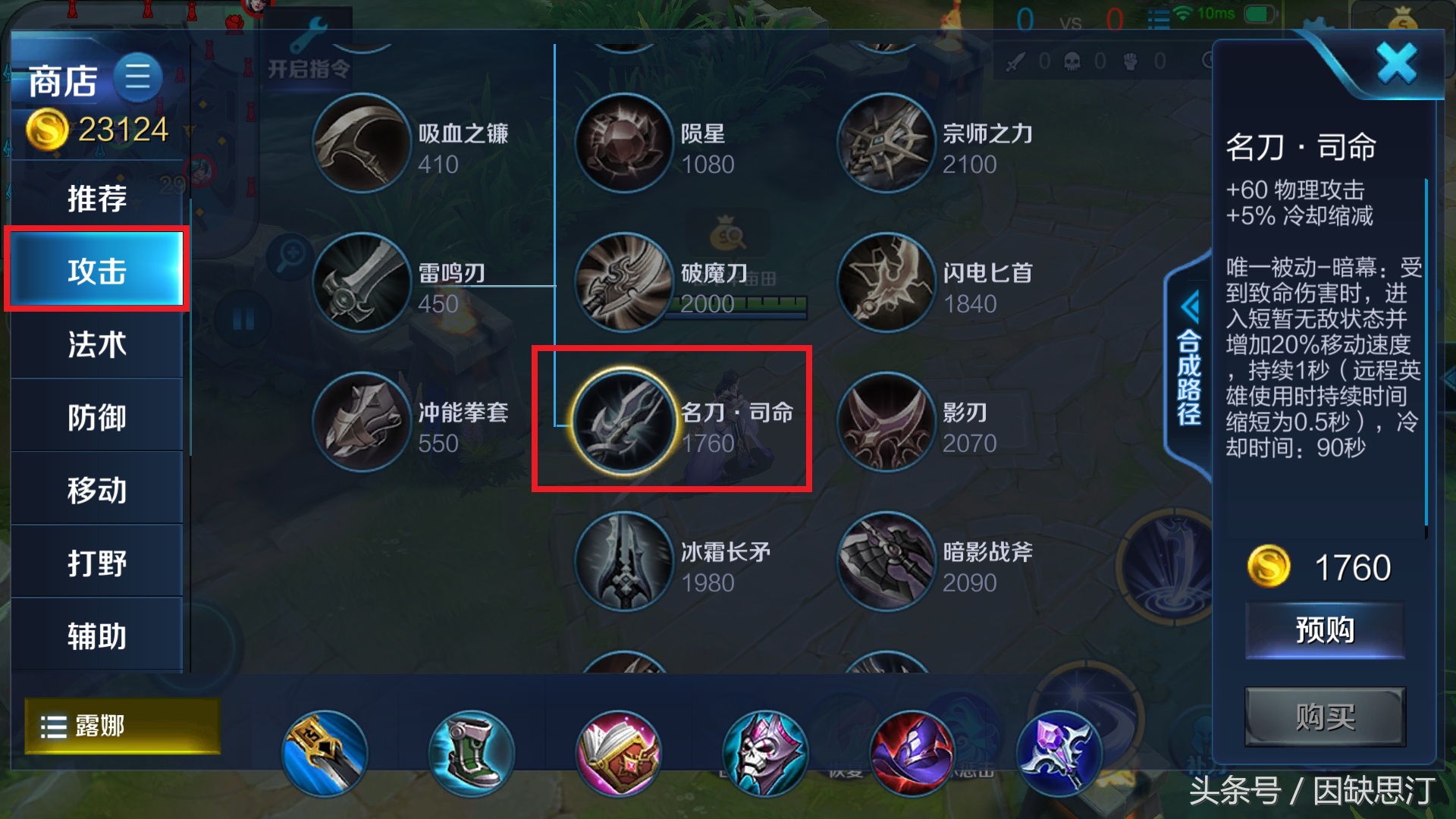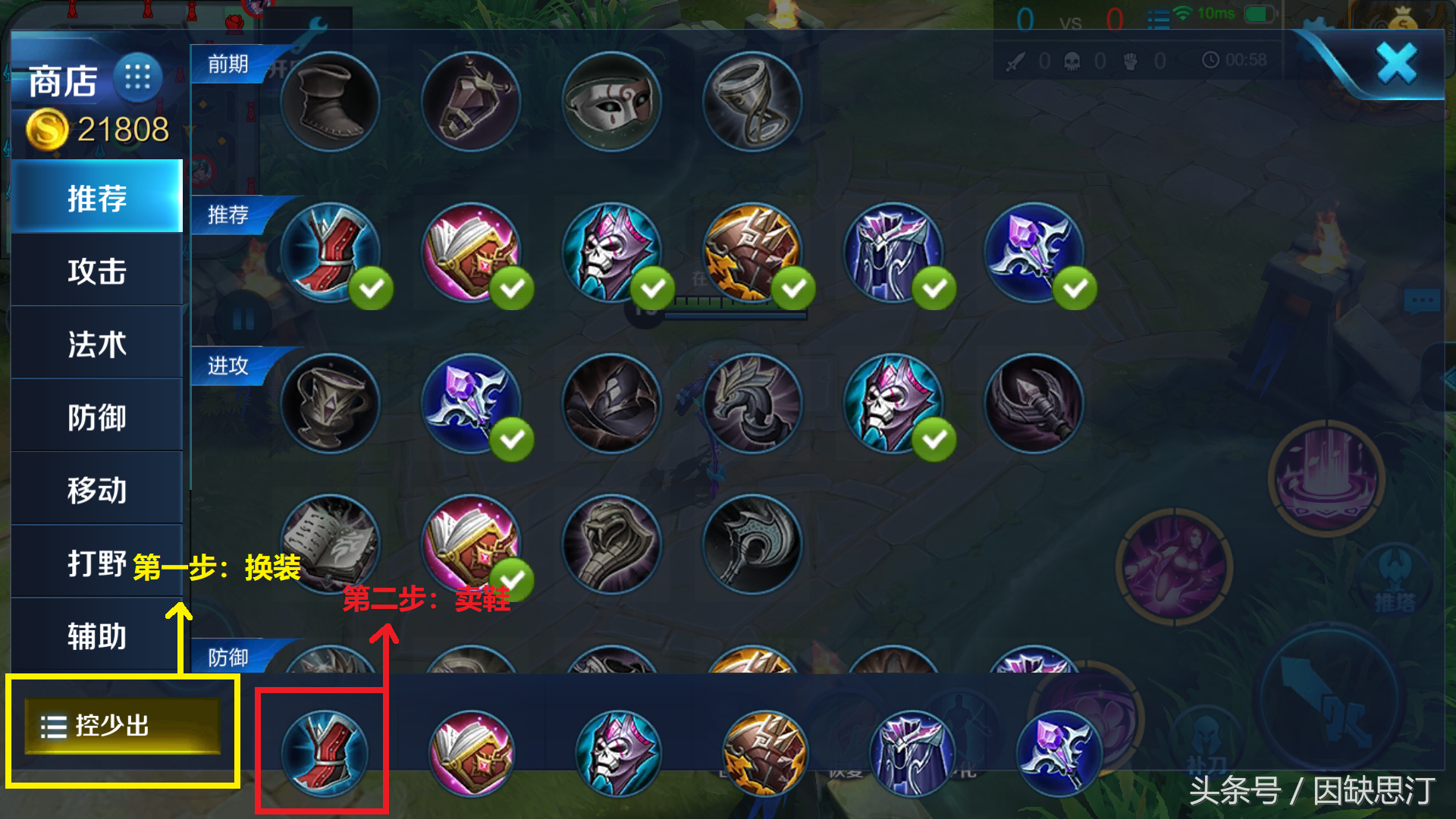 随后,在对局中遇到可能需要保命装的关键时刻,就直接现在装备栏中将出装改成保命装,随后立即将鞋子(或者不需要的装备卖掉)。