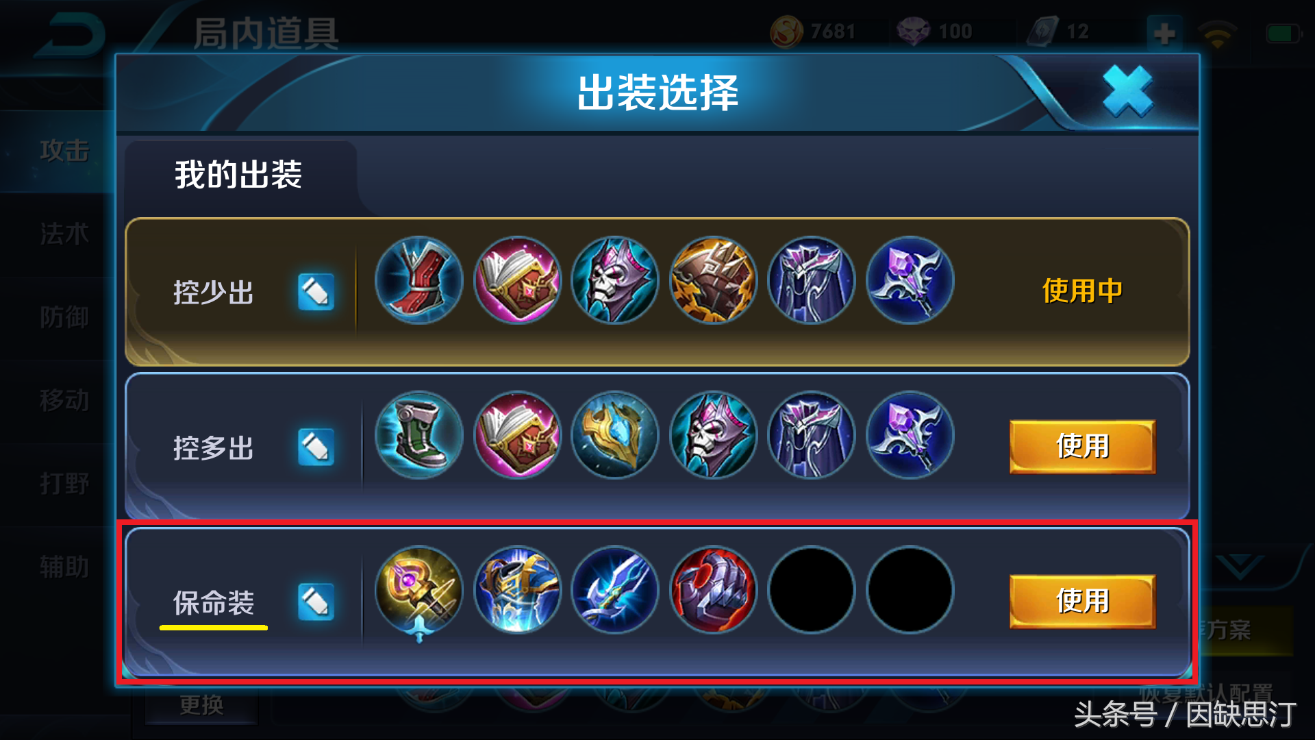 那么,到底要如何才能做到呢?重头戏来了!零度的方法是先在对局所用英雄的出装选择中设置好一栏保命装专栏,按照自己的惯用顺序先排好序。