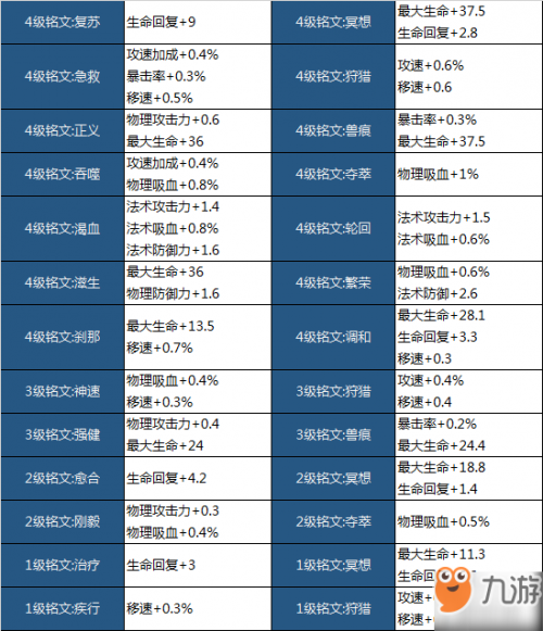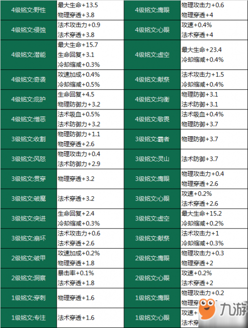官方为每个5级的铭文都准备1-4级相同类型类型属性的铭文,使得每一个5级铭文都有属性相同、数值不同的1~4级铭文相对应。