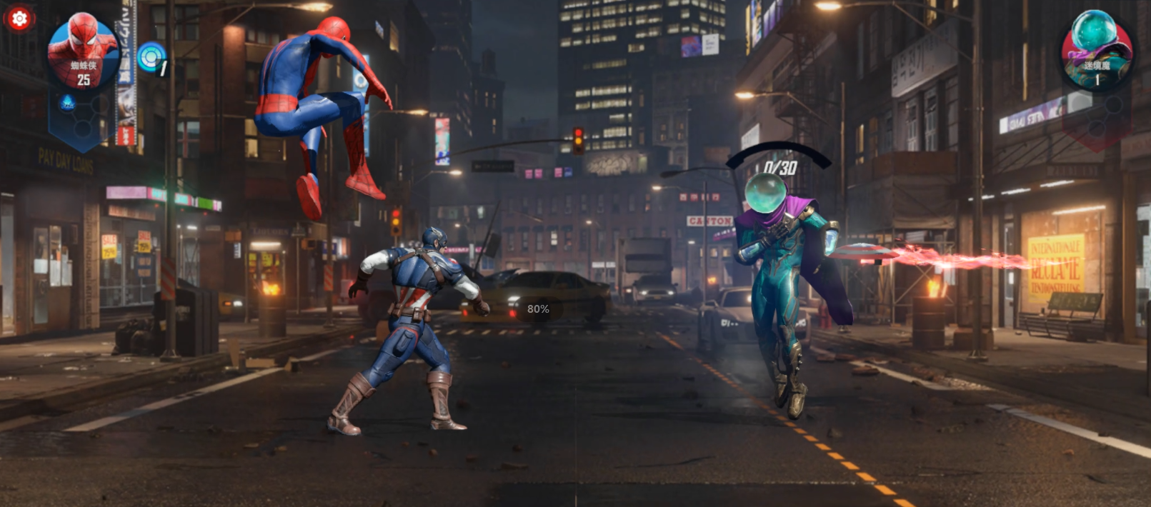 而游戏上线的2.0版本同业也很炫酷,游戏采用了街机格斗风来展现游戏战斗,再加上游戏还有疑似连携技的招式,让这款游戏的新版本看起来非常有非常的新颖、当蜘蛛侠和美队一起出击迎战神秘客的时候,会让玩家感受到什么叫做游戏里的漫威多远宇宙。