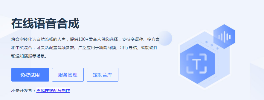 在讯飞开放平台,提供在线语音合成功能,可以将文字转化为自然流畅的人生,并提供100 多种发音人供用户选择。