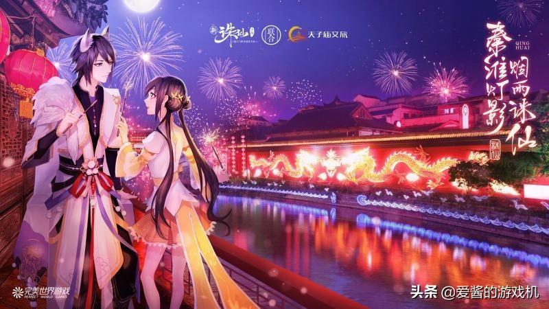 虽然故宫门票难得,但南京秦淮夫子庙却早已将穿越玩得风生水起。同样是逛庙会看灯会,夫子庙已经完成了跨界合作,与《诛仙手游》完成官方联动,将景区全实景植入游戏中,完成最硬核穿越。
