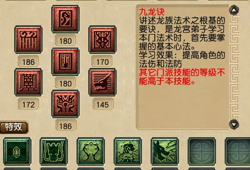 学习效果,可提升法伤和法防,为门派技能的主技能。(即其他技能都不能高于此技能)