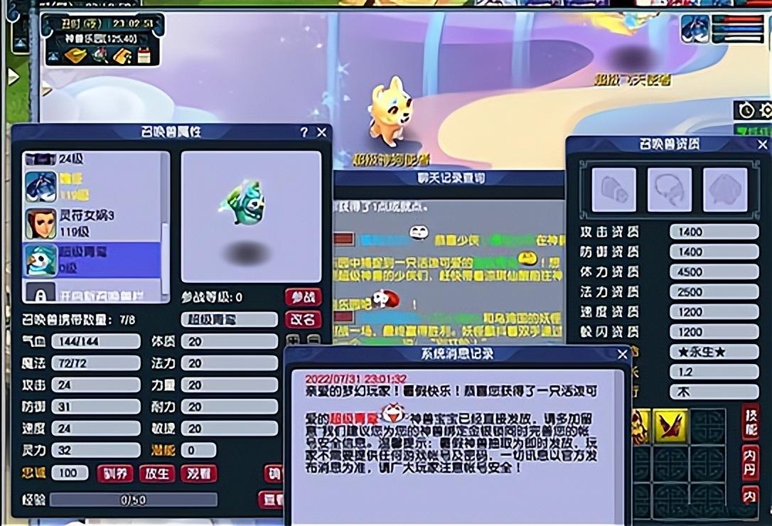 在每年的暑假活动中大家都是有机会获得神兽的奖励的,只不过能够获得神兽的只有极少数的玩家,就比如上面的这位狗托,上面的这位狗托就在神兽乐园中抓到了超级青鸾。