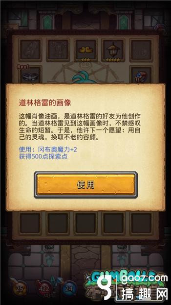 道林格雷好友为其创作的肖像油画,道林格雷见之,感叹生命之短暂。于是他许下愿望:用自己的灵魂换取不老的容颜。使用后能够增加2点魔力,获得500探索点。