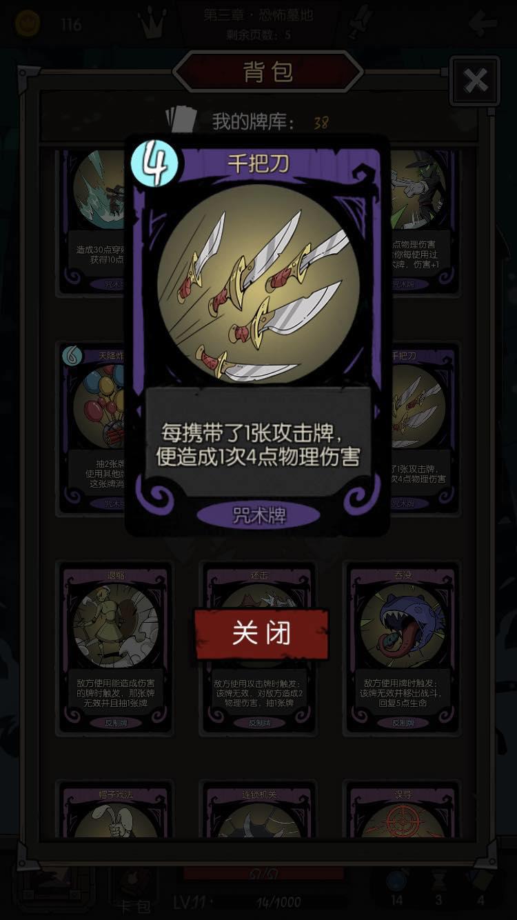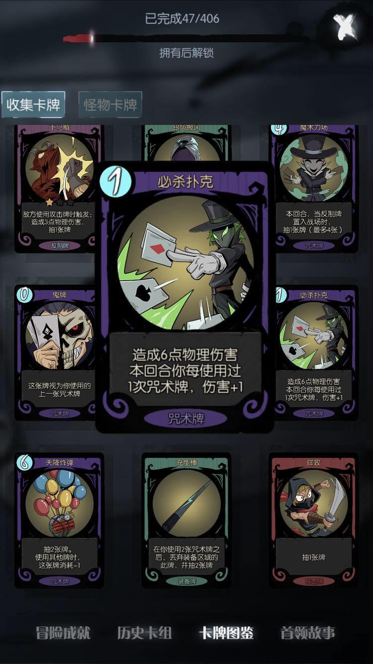 笔者走的是爆发流,因此积累了三张千把刀、两张必杀扑克和两张扑克飞镖(欧皇脸),希望在每一回合都能打出极高的伤害。同时,把几乎所有的加点机会都给了法术值,手中的法术卡也很多,主要是保证持续的输出。在防御方面,反制卡凝视、吞没和咒术反制是大头,在加上罗生门这种行动卡。通过魔术帘幕和天降炸弹一边减费一边过牌,找清晰术或者法力源泉继续减费,在配合加伤害类卡牌和罗生门来打出成吨伤害并叠甲。