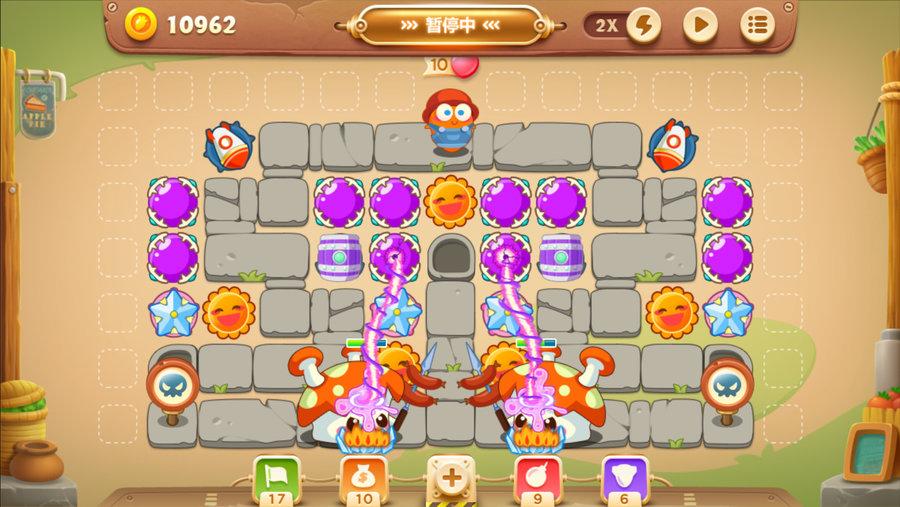 在把中间两个大障碍物清除掉以后,我建议在两边放上赌气弹,保证伤害充足,再各放一个魔法球清理周边障碍物,快速获取金钱以及更多的位置。
