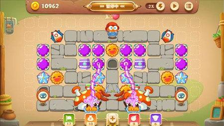 如前面难点攻克所说,我推荐使用太阳。开局在这两个位置放上太阳,可以清理上面的两个大障碍物。快速打开局面。