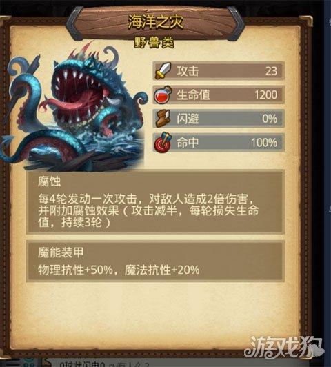 第3层是海洋之灾,攻击23,血量1200,这个比较恶心,因为技能腐蚀会降低冈布奥的攻击,且每轮损失生命。这里也直接平A,根据冈布奥血量情况,过低就使用营养液撑过去。