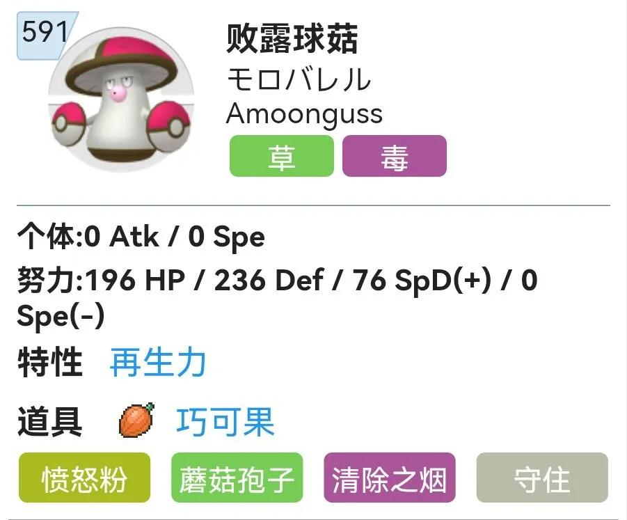 技能:愤怒粉(42) 蘑菇孢子(54) 清除之烟(20) 守住(机)
