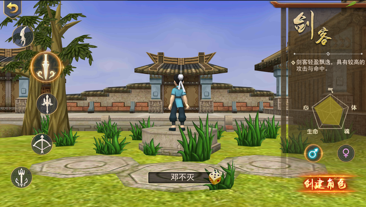 剑士职业来源于漫画书的另一个主人公——谭花磷,她身怀剑皇所创的长白剑法,并继承了能够破除一切邪恶污秽之物的伏魔花灵剑。江湖中,剑士以身法轻盈出剑凌厉而著称。快如闪电的剑招,常常让敌人来不及恐惧的优雅死去。剑士强调高命中,通过自身闪避,以及削弱敌方命中来达到高生存的目的。