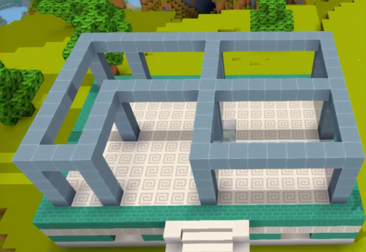 用白色方块将框架上面给填充满再按如图所示搭建第一层的框架,如果玩家想要采用不一样的房间布局,可以对这个框架做自行修改。