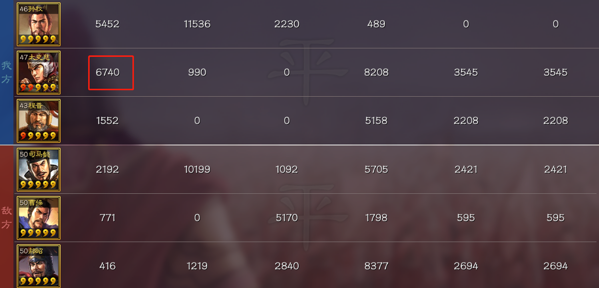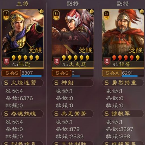 接着就是太史慈,由于自带连击属性,收益无非是最大的一位。