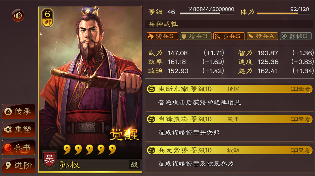 最后也是最有排面的一位,那就是全三战最特殊的核心——孙权。