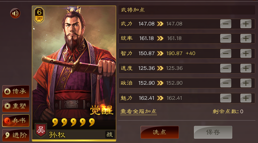 凭借着自带战法的特殊性,孙权和突击战法或者被动伤害战法都比较搭配。但是这里村夫还是比较推荐全智力加点的法刀孙权。