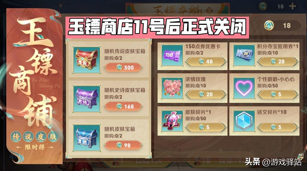 如果没有梦境试炼但又想要抵扣卡的玩家注意了!玉镖商店将在11号后正式关闭,关闭之后玉镖币将被清空处理,因此在此之前大家记得将剩余的玉镖币耗光,可优先换取点券卡,玉镖币不足的话还可选择皮肤碎片和积分夺宝券。