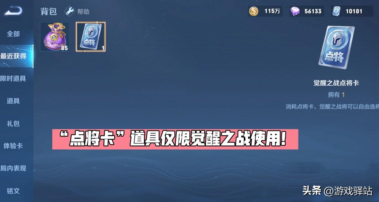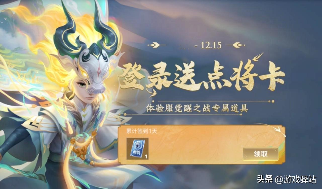 另外下个版本除了新增“遗忘之水”清除数据的道具外,还新增了一个“点将卡”道具,所有体验服玩家皆可登录免费领取一个,该道具仅限觉醒之战模式使用,如下图所示: