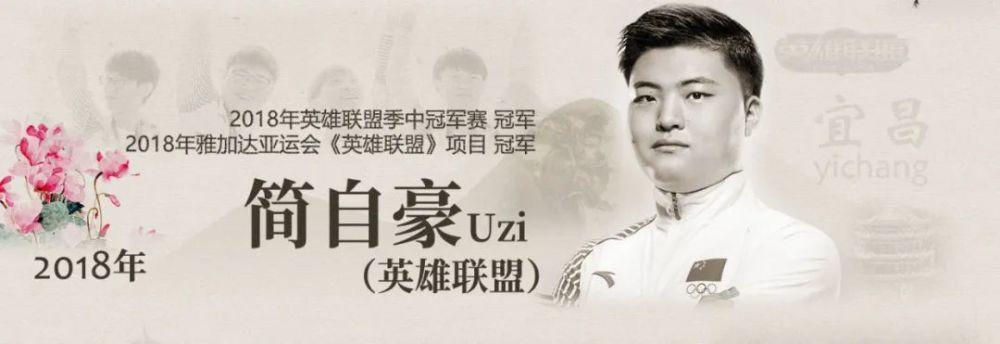 2018年英雄联盟季中冠军赛冠军,2018亚运会英雄联盟项目冠军。简自豪“Uzi”于S3、S4两度打入总决赛,带给了中国粉丝对于世界赛冠军最初的向往与不甘。2018年简自豪“Uzi”终于迎来了爆发的一年,连续夺得LPL春季赛冠军、MSI冠军、LPL夏季赛冠军,并为中国英雄联盟带回了第一块亚运会金牌。