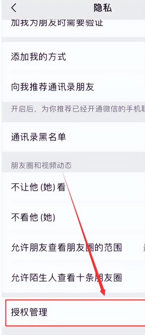 4.在打开的隐私设置页面,找到“授权管理”选项,打开。