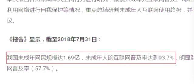 有数据显示,截至2018年7月31号,我国未成年网民规模已达到1.69亿,未成年人互联网普及率达到93.7%,让人揪心的是,我国城市地区14.1%的青少年受到网络沉迷困扰,乡村地区与之接近,整体达到3300万。